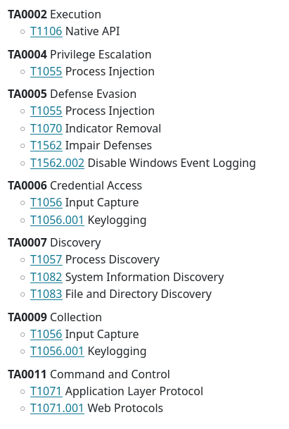 ATT&CK Techniques used